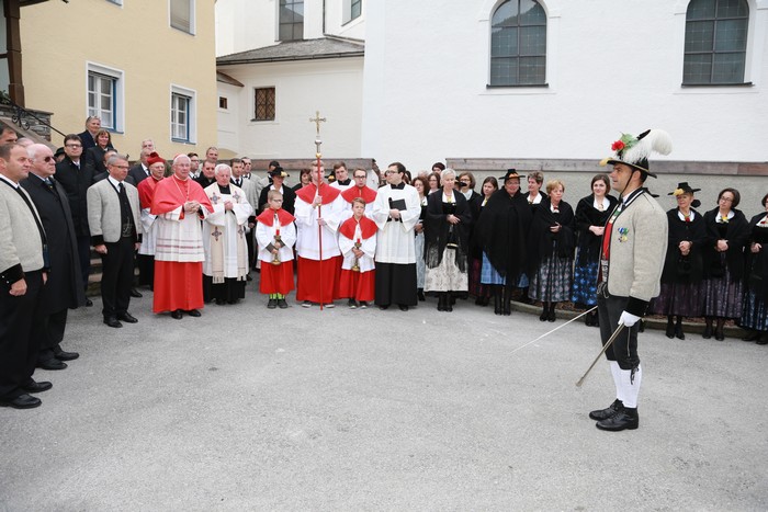 Nach dem Landesüblichen Empfang durch Schützenkompanie und Musikkapelle Zell am Ziller mit Frontabschreitung und Ehrensalve, folgte die Festmesse mit Kirchenchor und Orchester im Beisein von Vertretern von Land, Bezirk und Gemeinden, zahlreicher Vereinsabordnungen und unter großer Anteilnahme der Bevölkerung.