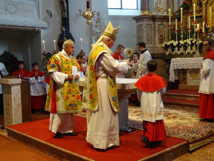 Am Schluss der Heiligen Messe folgten Worte der Würdigung und des Dankes durch Finanzkammerdirektor Lidicky, welcher mit Freude einige Eckpunkte der Sanierung nochmals in Erinnerung rief, den erheblichen finanziellen Beitrag der Erzdiözese hervorhob und den Einsatz von Dekan Steinwender und das Endergebnis besonders lobte.